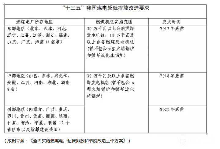 2015年12月2日國(guó)務(wù)院常務(wù)會(huì)議及《全面實(shí)施燃煤電廠超低排放和節(jié)能改造工程工作方案》要求東、中、西部有條件的燃煤電廠分別在2017年底、2018年底、2020年底錢實(shí)現(xiàn)超低排放。即在基準(zhǔn)樣含量6%條件下,煙塵、二氧化硫、氮氧化物排放濃度分別不高于10毫克/立方米、35毫克/立方米、50毫克/立方米,燃煤機(jī)組平均除塵、脫硫、脫銷分別達(dá)到99.95%、98%、85%以上。保守估計(jì),我國(guó)的電力煙塵、二氧化硫、氮氧化物將由2015年的40萬(wàn)噸、300萬(wàn)噸、250萬(wàn)噸下降到2020年的20萬(wàn)噸以下、100萬(wàn)噸以下、100萬(wàn)噸以下。