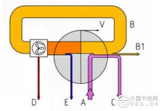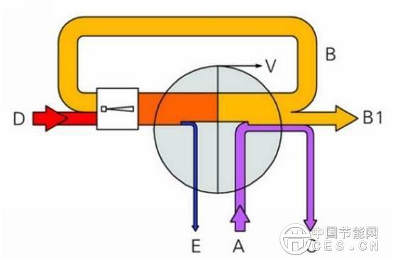 A 產(chǎn)品 ,B 二次蒸汽 ,B1 殘余蒸汽, C 濃縮液 ,D 電能, E 動力蒸汽冷凝水, V 熱損失