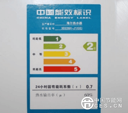 電熱水器的能效標識,除了生產廠家和產品具體型號,2級能效等級,下面的標識也有兩項:24小時固有能耗系數為0.7,這是指在不使用熱水器的條件下,將水溫維持在設置溫度實際需要的能量與標準限定的能量之間的比值。這一比值越低,熱水器的保溫效果越好,一般用ε表示。1級能效對應ε≤0.6,2級能效對應ε≤0.7,3級能效對應ε≤0.8,4級能效對應ε≤0.9,5級能效對應ε≤1.0。