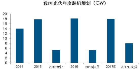 2016 年下發(fā)光伏扶貧規(guī)劃約 4.5GW,2017 年目標(biāo)預(yù)計在 8GW 左右