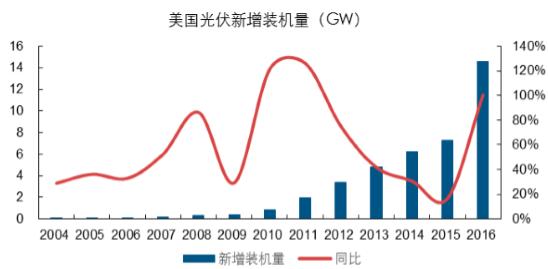 近年來美國光伏裝機(jī)規(guī)模持續(xù)擴(kuò)張