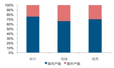 2015 年我國硅片、電池、組件環(huán)節(jié)產(chǎn)能均占全球 70%以上