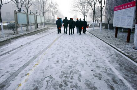 2017年1月3日上午,環(huán)境保護部重污染天氣應(yīng)急督查第九督查組冒雪在鶴煤化工檢查。攝影/章軻