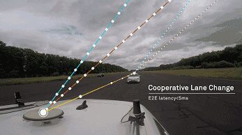 在這些場(chǎng)景演示中,兩輛車或多輛車同向行駛,前車作為領(lǐng)航車,有人駕駛,后車為無人駕駛。前車在進(jìn)行緊急制動(dòng)、變道、轉(zhuǎn)彎時(shí),實(shí)時(shí)將操控信號(hào)通過5G基站傳達(dá)到后車,后車在極低時(shí)延下收到信號(hào)指令,及時(shí)做出與前車協(xié)同一致的動(dòng)作。現(xiàn)場(chǎng)測(cè)試表明,基于5G的高可靠和超低時(shí)延的V2X方案,前車和后車指令傳輸?shù)亩说蕉藭r(shí)延最低可以控制在5毫秒,大大縮短后車延遲反應(yīng)的時(shí)間,從而使整個(gè)車輛編隊(duì)步調(diào)一致,車輛間的安全距離也可縮小,直接降低風(fēng)阻造成的燃油消耗,同時(shí)使整個(gè)車隊(duì)的安全性也得到保障。