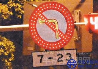 因LED燈直接附著在標(biāo)志上,像“禁止左轉(zhuǎn)”與“分道標(biāo)志”原本的黑箭頭就貼上黃色LED燈,白天看還好,但晚上標(biāo)志內(nèi)的指示箭頭,就會全部變成黃色,違反設(shè)置規(guī)定。