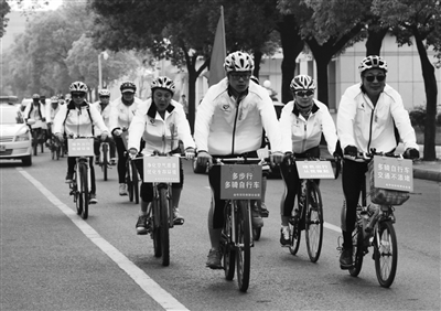 圖為金華市環(huán)保志愿者騎行宣傳綠色出行。朱智翔供圖