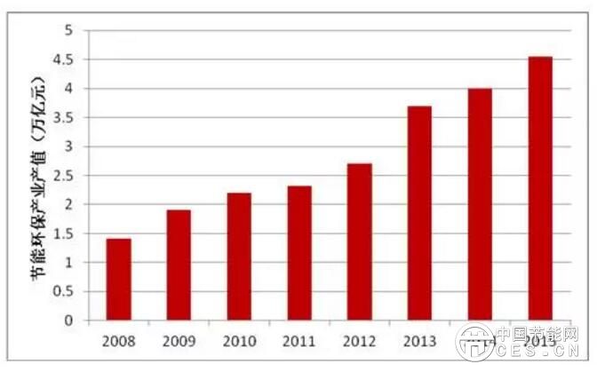 2008-2015年中國(guó)節(jié)能環(huán)保產(chǎn)業(yè)產(chǎn)值
