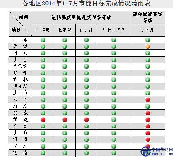 北極星節(jié)能環(huán)保網(wǎng)從國家發(fā)展和改革委員會(huì)獲悉:近日,國家發(fā)布了各地區(qū)2014年1-7月節(jié)能目標(biāo)完成情況晴雨表。通過對(duì)各地區(qū)節(jié)能形勢(shì)進(jìn)行分析,對(duì)照各地“十二五”年均節(jié)能任務(wù),1-7月,福建、海南、陜西、青海、新疆等5個(gè)地區(qū)預(yù)警等級(jí)為一級(jí),節(jié)能形勢(shì)十分嚴(yán)峻;寧夏預(yù)警等級(jí)為二級(jí),節(jié)能形勢(shì)比較嚴(yán)峻;北京、天津、河北、山西、內(nèi)蒙古、遼寧、吉林、黑龍江、上海、江蘇、浙江、安徽、江西、山東、河南、湖北、湖南、廣東、廣西、重慶、四川、貴州、云南、甘肅等24個(gè)地區(qū)預(yù)警等級(jí)為三級(jí),節(jié)能工作進(jìn)展基本順利。西藏缺乏統(tǒng)計(jì)數(shù)據(jù),沒有進(jìn)行預(yù)測(cè)。與上半年相比,陜西由二級(jí)預(yù)警上升為一級(jí)預(yù)警;寧夏由一級(jí)預(yù)警下降為二級(jí)預(yù)警。