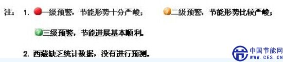 與“十二五”節(jié)能工作進(jìn)度要求相比較,海南、青海、寧夏、新疆等4個(gè)地區(qū)預(yù)警等級(jí)為一級(jí),陜西預(yù)警等級(jí)為二級(jí),北京、天津、河北、山西、內(nèi)蒙古、遼寧、吉林、黑龍江、上海、江蘇、浙江、安徽、福建、江西、山東、河南、湖北、湖南、廣東、廣西、重慶、四川、貴州、云南、甘肅等25個(gè)地區(qū)預(yù)警等級(jí)為三級(jí)。與上半年相比,福建由二級(jí)預(yù)警下降為三級(jí)預(yù)警。