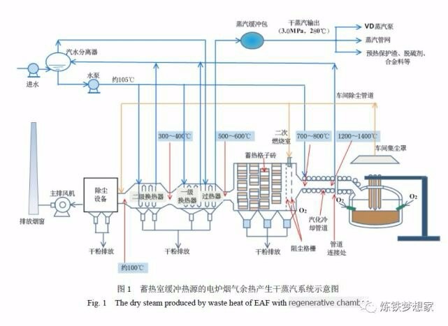 轉(zhuǎn)爐煤氣進(jìn)入除塵系統(tǒng)時(shí)的溫度約800~900℃。無(wú)論是干法除塵(LT)還是濕法除塵(OG),均采用冷卻水將煙氣溫度降到170℃左右,煤氣顯熱沒(méi)有回收。制約轉(zhuǎn)爐煤氣顯熱回收的關(guān)鍵是粉塵量大、CO泄漏,目前尚未有可行的余熱回收技術(shù)。