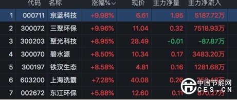 今日早盤,環(huán)保股大幅走強(qiáng),領(lǐng)漲兩市。截至發(fā)稿,京藍(lán)科技、三聚環(huán)保漲停,碧水源漲超9%,上海洗霸漲超8%,鐵漢生態(tài)、聚光科技等紛紛大漲。污水處理板塊異動(dòng),龍頭天翔環(huán)境漲停。