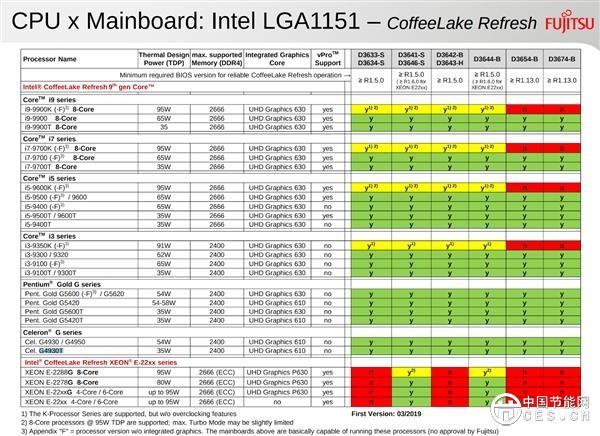 核心提示:Fujitsu(富士通)在一份主板BIOS更新文檔中直接列出了Intel 9代酷睿桌面處理器的全部型號,甚至還有奔騰、賽揚和Xeon E。