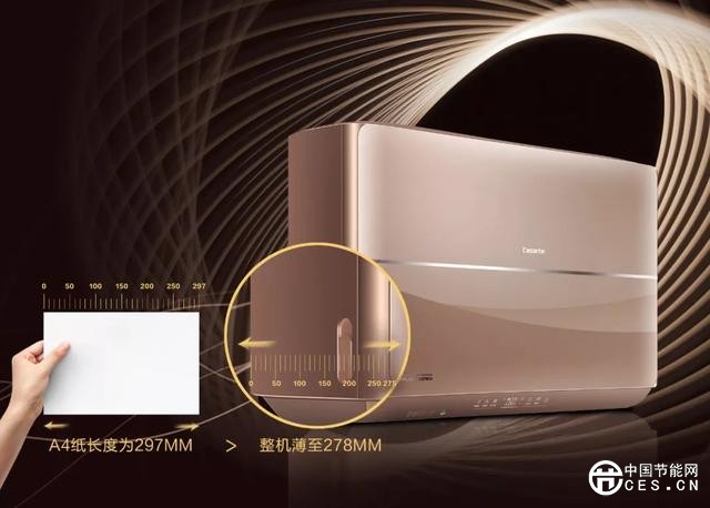 雙膽并聯(lián)和保溫層減薄的雙重作用,讓電熱水器整機(jī)厚度變得纖薄。以50L容積卡薩帝電熱水器天沐PRO為例,厚度只有278mm,小于一張A4紙長度,比傳統(tǒng)電熱水器瘦身一半,居行業(yè)纖薄之首!