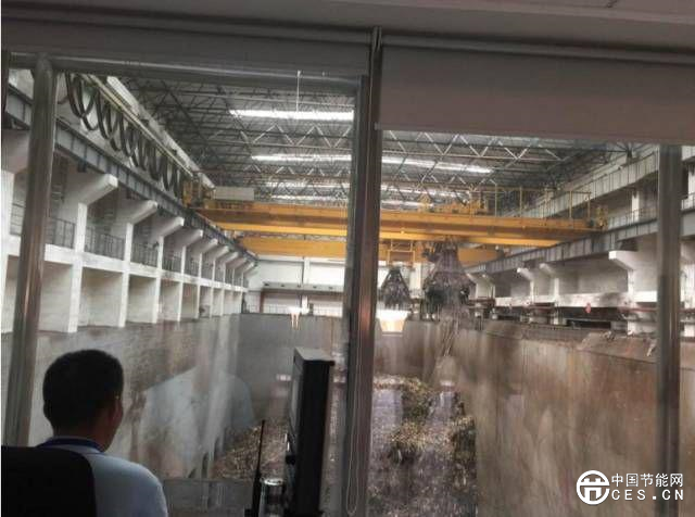 當(dāng)然,最佳參觀點(diǎn)還是位于最高層的操作室。兩位操作員坐在舒適的轉(zhuǎn)椅中,隔著大片落地玻璃,居高臨下,俯視著幾乎有大半個足球場面積的垃圾坑。據(jù)說,要堆滿這個坑的話,大約需要2.5萬噸垃圾,比上海每天的生活垃圾產(chǎn)出量還要多。之所以要備下一個如此巨大的垃圾坑,是因?yàn)樯罾诜贌?,需要在這個坑里靜置發(fā)酵四五天,除去水分,提高熱值。就在這樣一個“宏偉”的垃圾堆前,操作員通過遙控手柄,控制兩臺巨大的抓斗,給焚燒爐喂料;每次抓握的垃圾,有6到10噸。