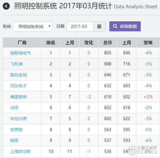 在節(jié)能時(shí)代,企業(yè)也在探索如何實(shí)現(xiàn)綠色照明的道路。根據(jù)千家品牌實(shí)驗(yàn)室監(jiān)測(cè)數(shù)據(jù),3月份智能照明行業(yè)的前十排名如下圖所示: