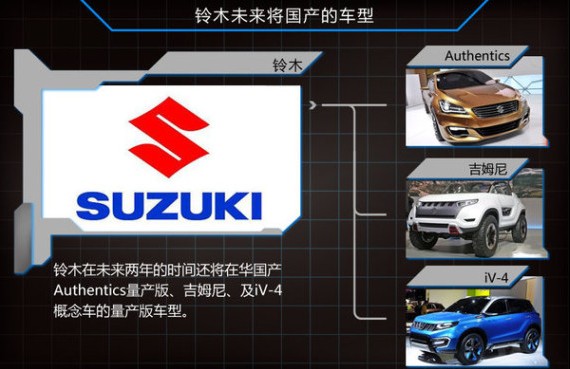 鈴木今年10月在中國市場銷售19,184輛汽車,而去年10月份在華銷量為16,888輛,同比增長13.5%。在未來兩年的時(shí)間內(nèi),鈴木還將國產(chǎn)多款新車,促進(jìn)其在華銷量的進(jìn)一步增長。今年的法蘭克福車展上展出的iV-4概念車的量產(chǎn)版也于2015年由長安鈴木進(jìn)行國產(chǎn),此外還將推出國產(chǎn)版的吉姆尼。
