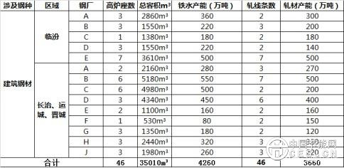 表1:涉及區(qū)域建筑鋼材產(chǎn)能產(chǎn)線可視圖