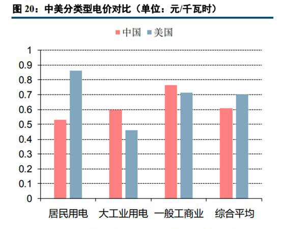 二、中美電價(jià)構(gòu)成接近,分用戶電價(jià)偏差較大