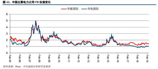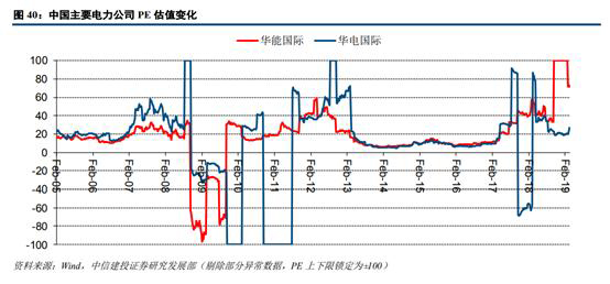 從華能國(guó)際和華電國(guó)際的近年P(guān)E估值情況來(lái)看,兩公司估值區(qū)間波動(dòng)較大。由于我國(guó)火力發(fā)電企業(yè)受“市場(chǎng)煤計(jì)劃電”影響,其盈利能力受煤價(jià)影響呈現(xiàn)大幅波動(dòng),從而導(dǎo)致PE波動(dòng)較大。在煤價(jià)較高的時(shí)間點(diǎn)(2008年、2011年、2017年等),兩公司的PE呈現(xiàn)不正常的上下波動(dòng),基本上不具備估值參考的意義。從這個(gè)角度來(lái)看,當(dāng)前我國(guó)火電尚未能完全體現(xiàn)出公用事業(yè)板塊的特點(diǎn),更多的表現(xiàn)出逆周期的特質(zhì)。