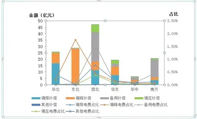 圖1:各區(qū)域電力輔助服務補償費用情況