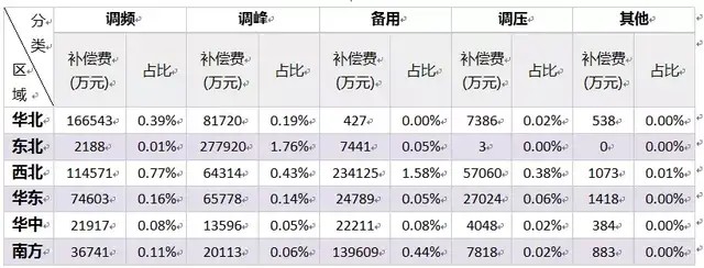 (一)各區(qū)域電力輔助服務補償費用情況