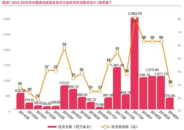 報(bào)告顯示,2018年,中國清潔能源及技術(shù)行業(yè)投資關(guān)注點(diǎn)仍然聚焦于環(huán)保和清潔能源技術(shù)領(lǐng)域,這兩個(gè)細(xì)分領(lǐng)域集中了行業(yè)70%以上的投資事件和76%的投資金額。