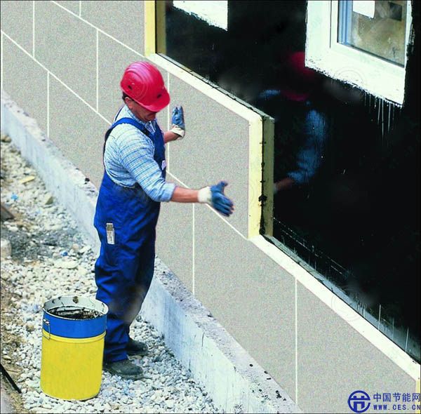 2.將涂抹好膠粘劑的保溫板緊密地粘貼在墻面上(或插入托架),在粘貼下一塊保溫板時,應(yīng)將這塊板從側(cè)面推壓向前一塊板,并保證保溫板與保溫板之間的接縫被壓緊。在墻角托架處,玻璃纖維網(wǎng)格布應(yīng)延伸至托架的底邊邊緣,多余部分用刀切除。