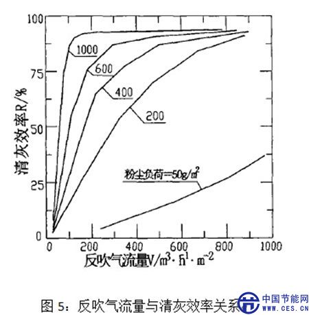 3、之前有清灰理論研究認(rèn)為,將塵粒從纖維上吹落的氣流速度至少需要10-20m/s。但是又有研究表明,當(dāng)粉塵負(fù)荷在1000g/m2時(shí),反吹風(fēng)速在2-3m/min,即可獲得很好的清灰效率,如圖5所示。兩種說法表面看相互矛盾。