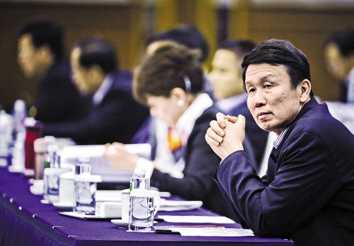 2014年3月11日,廣東代表團舉行全體會議,審議兩高報告。圖為全國人大代表、佛山市市長劉悅倫(右一)