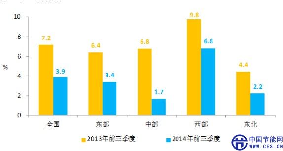 圖22013、2014年前三季度各地區(qū)用電增速情況圖