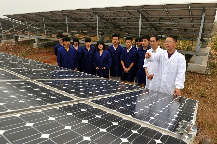 6月13日,教師在學校校園太陽能發(fā)電站對學生現(xiàn)場教學指導。近年來,江西新余學院積極對接地方優(yōu)勢產(chǎn)業(yè),為解決由新能源產(chǎn)業(yè)迅速發(fā)展所帶來的人才瓶頸問題,開展新能源人才培養(yǎng),為新余市新能源產(chǎn)業(yè)發(fā)展提供人才保障和智力支持。按照“以工科為主導、文理為基礎、新能源為特色、多學科協(xié)調(diào)發(fā)展”的辦學思路,新余學院在全國率先成立新能源科學與工程學院,開辦新能源科學與工程、材料物理(新能源方向)、光伏發(fā)電技術(shù)及應用、太陽能光熱技術(shù)及應用等新能源專業(yè),并正在積極申報新能源材料與器件、能源與動力工程等與新能源產(chǎn)業(yè)相關的本科專業(yè),并在新能源產(chǎn)業(yè)相關專業(yè)進行人才培養(yǎng)模式的改革,探索產(chǎn)學政研用相結(jié)合的辦學形式。近年來,新余學院在新能源人才培養(yǎng)方面取得了顯著成效,為新能源企業(yè)輸送了數(shù)千名優(yōu)秀人才,受到了用人單位的青睞。據(jù)悉,“國家新能源科技城”新余是江西省的工業(yè)基地,目前,已形成鋼鐵、新能源和新材料三大產(chǎn)業(yè),其中的新能源產(chǎn)業(yè)亦形成以光伏產(chǎn)業(yè)為核心,風電、節(jié)能減排設備制造業(yè)等其他產(chǎn)業(yè)為補充的產(chǎn)業(yè)集群,顯示出發(fā)展速度快、產(chǎn)業(yè)規(guī)模大、創(chuàng)新能力強、發(fā)展后勁足的優(yōu)勢。