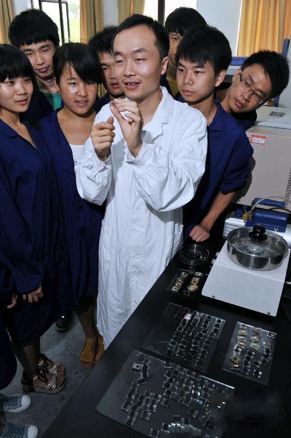 6月13日,徐勝建博士正在給新能源科學與工程學院的學生講解新型太陽能電池工作原理。近年來,江西新余學院積極對接地方優(yōu)勢產(chǎn)業(yè),為解決由新能源產(chǎn)業(yè)迅速發(fā)展所帶來的人才瓶頸問題,開展新能源人才培養(yǎng),為新余市新能源產(chǎn)業(yè)發(fā)展提供人才保障和智力支持。按照“以工科為主導、文理為基礎、新能源為特色、多學科協(xié)調(diào)發(fā)展”的辦學思路,新余學院在全國率先成立新能源科學與工程學院,開辦新能源科學與工程、材料物理(新能源方向)、光伏發(fā)電技術(shù)及應用、太陽能光熱技術(shù)及應用等新能源專業(yè),并正在積極申報新能源材料與器件、能源與動力工程等與新能源產(chǎn)業(yè)相關的本科專業(yè),并在新能源產(chǎn)業(yè)相關專業(yè)進行人才培養(yǎng)模式的改革,探索產(chǎn)學政研用相結(jié)合的辦學形式。近年來,新余學院在新能源人才培養(yǎng)方面取得了顯著成效,為新能源企業(yè)輸送了數(shù)千名優(yōu)秀人才,受到了用人單位的青睞。據(jù)悉,“國家新能源科技城”新余是江西省的工業(yè)基地,目前,已形成鋼鐵、新能源和新材料三大產(chǎn)業(yè),其中的新能源產(chǎn)業(yè)亦形成以光伏產(chǎn)業(yè)為核心,風電、節(jié)能減排設備制造業(yè)等其他產(chǎn)業(yè)為補充的產(chǎn)業(yè)集群,顯示出發(fā)展速度快、產(chǎn)業(yè)規(guī)模大、創(chuàng)新能力強、發(fā)展后勁足的優(yōu)勢。