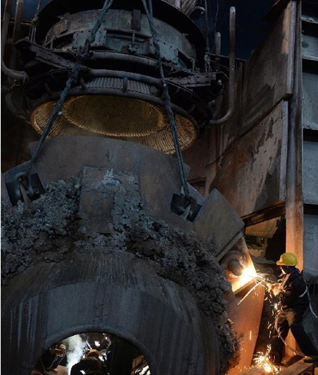 2月23日,工人在河北唐山貝氏體鋼鐵公司轉(zhuǎn)爐車間內(nèi),將拆除后的轉(zhuǎn)爐引錠裝置裝車外運。當(dāng)日,繼2013年11月24日化解鋼鐵過剩產(chǎn)能第一次“周日行動”后,河北省再出重拳,在唐山、邯鄲、秦皇島、邢臺和張家口集中拆除15家鋼鐵企業(yè)高爐16座、轉(zhuǎn)爐3座,壓減煉鐵產(chǎn)能671萬噸、煉鋼產(chǎn)能149萬噸,為確保完成今年壓減粗鋼1500萬噸產(chǎn)能的目標(biāo)任務(wù)奠定了良好基礎(chǔ)。新華社發(fā)(鄭勇 攝)