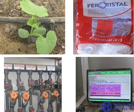 阿爾梅利亞地區(qū)降水稀少,蒸發(fā)量高,蔬菜栽培中廣泛采用滴灌施肥技術(shù)。目前實習(xí)基地的黃瓜已經(jīng)生長到3葉1心,前期的滴灌施肥管理如下: