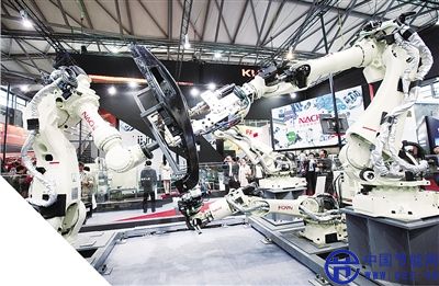 第16屆中國國際工業(yè)博覽會(huì)上,一組工業(yè)機(jī)器人在進(jìn)行操作演示。 記者 方 喆攝