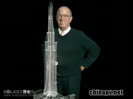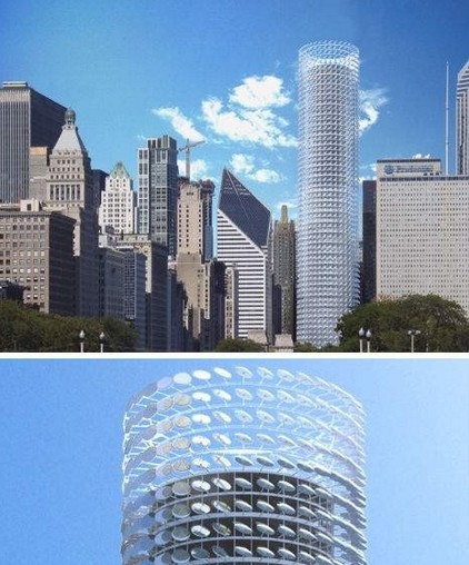 芝加哥擁有不止一座未完工的巨型摩天大樓,它們都因經(jīng)濟(jì)狀況而被迫停工。但是,我們?nèi)匀幌M@座由ZokaZola建筑公司設(shè)計(jì)的芝加哥太陽能大樓有朝一日能變成現(xiàn)實(shí),在這座風(fēng)之城里豎立起一個(gè)可持續(xù)發(fā)展的城市設(shè)計(jì)的典型樣例。這座太陽能建筑的特色在于其建筑正面環(huán)繞著帶有跟蹤機(jī)械臂的太陽能收集器,這種設(shè)計(jì)可以使太陽能收集器在一天之中隨時(shí)跟蹤太陽活動(dòng)。和固定臂太陽收集器相比,帶有跟蹤機(jī)械臂的太陽能收集器每天可以多收集40%的太陽能。這座太陽能大樓甚至還可以把太陽能電池板上所受到的風(fēng)壓轉(zhuǎn)化為清潔能源。