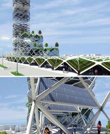 由JorgeHernandezdelaGarza為墨西哥城設(shè)計(jì)的大型通風(fēng)立體式公園建筑中,幾乎每一層都覆蓋有太陽能板。這座建筑所產(chǎn)生的電能將可以滿足公園內(nèi)所有房間、辦公室及休閑場所的用電需求。這座立體式公園建筑的一個(gè)亮點(diǎn)為可折疊式設(shè)計(jì),在必要情況下,這座建筑可以進(jìn)行向外擴(kuò)張延伸及重新定位。另外該建筑中還帶有“空中花園”及“城市農(nóng)場”。