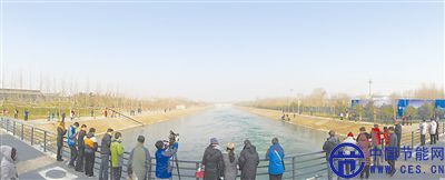 12月27日,南水北調(diào)中線總干渠末端北京團(tuán)城湖明渠水面尚有浮冰。