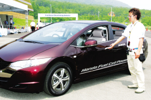 7月6日,工作人員展示本田公司生產(chǎn)的一款使用燃料電池的節(jié)能汽車。