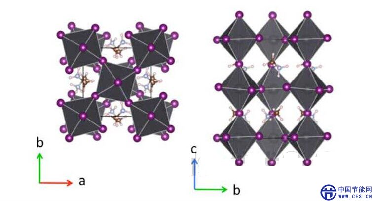 目前,特別研究小組正在探索鹵化金屬鈣鈦礦型太陽能電池的代表——甲基氨基碘化鉛(CH3NH3PbI3,圖1)等太陽能電池的制造方法。小組負(fù)責(zé)人白井康裕介紹說:“我們在考慮離子性晶體的化學(xué)方面的問題的同時,使用通常的固體物性的研究方法和計測手段,對使用鹵化金屬鈣鈦礦的太陽能電池為何具有高效率等高性能發(fā)揮機(jī)制展開了研究。”