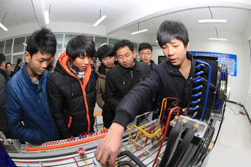 央廣網(wǎng)河南分網(wǎng)消息 據(jù)商丘日報報道:12月24日,民權(quán)縣職教中心的學員們在老師的指導下認真進行制冷實習操作。為了給高新區(qū)制冷產(chǎn)業(yè)基地培訓產(chǎn)業(yè)工人,民權(quán)縣免費開設實驗課,給各個制冷企業(yè)培訓技術(shù)人才。(記者 閻鵬亮 攝)