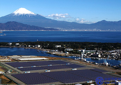 電站建在靜岡市清水區(qū)三保地區(qū),占地面積約為14萬m2。以富士山和三保松為背景排列著太陽能電池板,可謂是日本特有的百萬瓦級光伏電站圖景。