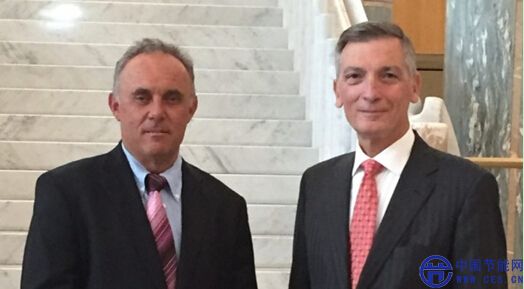 澳大利亞液態(tài)金屬蓄電池研究公司首席執(zhí)行官戈登•海恩茲(GordonHinds)和美國的聯(lián)合發(fā)明者唐納德•薩杜威(GordonHinds)教授