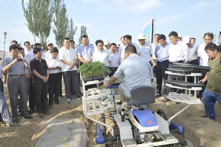 6月29日,寧夏自治區(qū)政府現(xiàn)代農(nóng)業(yè)觀摩團到寧夏吳忠市利通區(qū)金銀灘鎮(zhèn)楊馬湖村蔬菜、玉米機械化移栽示范園區(qū)觀摩蔬菜、玉米機械化移栽種植技術。