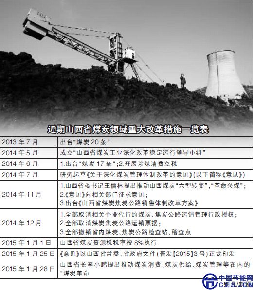 隨著煤炭市場步入“寒冬”,自2013年以來,山西先后出臺了“煤炭20條”“煤炭17條”,以及清理涉煤收費、推進(jìn)煤焦公路運銷體制改革和煤炭資源稅改革等一系列改革措施,著力規(guī)范行政權(quán)力,化解煤企壓力。