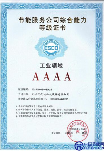 近日,由中國(guó)節(jié)能協(xié)會(huì)節(jié)能服務(wù)產(chǎn)業(yè)委員會(huì)(EMCA)協(xié)會(huì)組織的節(jié)能服務(wù)公司評(píng)級(jí)及2014年節(jié)能服務(wù)產(chǎn)業(yè)評(píng)優(yōu)活動(dòng)結(jié)果揭曉。仟億達(dá)股份喜獲節(jié)能服務(wù)公司綜合能力“AAAA”級(jí)企業(yè)。