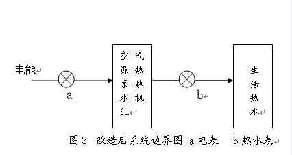 項目改造后,由超低溫空氣源熱泵熱水機組提供全局生活熱水。改造后系統(tǒng)邊界圖見下圖。