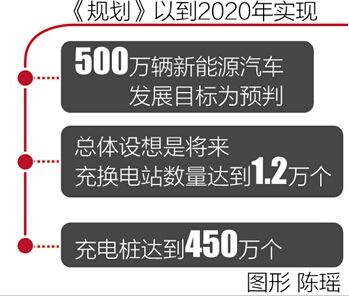 據了解,《規(guī)劃》以到2020年實現500萬輛新能源汽車發(fā)展目標為預判,總體設想是將來充換電站數量達到1.2萬個,充電樁達到450萬個。