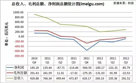 賽維LDK自2010年第四季度開始收入明顯下滑,至2012年一季度收入下滑至2億美元后有所回升,但至2012年三季度,其總收入依然保持在4億美元以下。