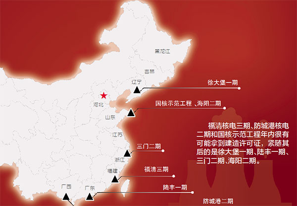 另據(jù)記者梳理,國核示范工程、福清三期和防城港二期年內(nèi)很有可能拿到建造許可證,緊隨其后的是徐大堡一期、陸豐一期、三門二期、海陽二期。